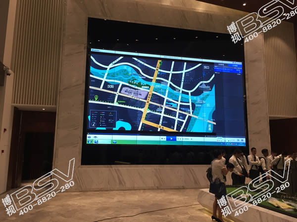 萬(wàn)科售樓中心與武漢博視合作了一套大屏幕顯示系統(tǒng),該液晶拼接顯示系統(tǒng)采用46英寸超窄邊液晶拼接單元,7行7列,無(wú)縫拼接,該系統(tǒng)是以影音互動(dòng)為核心的網(wǎng)絡(luò)顯示系統(tǒng),是可以將動(dòng)畫(huà)、視頻、三維全景、圖像、音樂(lè)、文字等數(shù)字資源整合在一個(gè)交互系統(tǒng)中并通過(guò)大屏幕來(lái)展現(xiàn)這些信息。